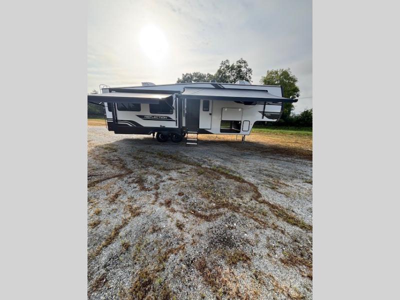 Built for adventure and year-round comfort, the Reflection 337RLS includes the Solar Package with a 370W solar panel upgrade, a 60-amp charge controller, and inverter prep for off-grid capabilities. Goodyear tires and the ABS axle assembly with sway control ensure smooth towing, while the dual A/C system with 13.5K BTU ducted second unit keeps everyone comfortable. Additional features like dual awnings, gel coat exterior sidewalls, walk-on roof decking, and laminated aluminum-framed slide rooms provide durability and style. With the Peace of Mind, Ultimate Power, and Deep Season Protection Packages, plus SafeRide RV Roadside Assistance and internet-ready prep, this Reflection is ready to take your adventures to the next level.