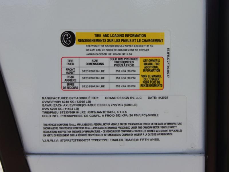 New 2026 Grand Design Reflection 337RLS Fifth Wheel