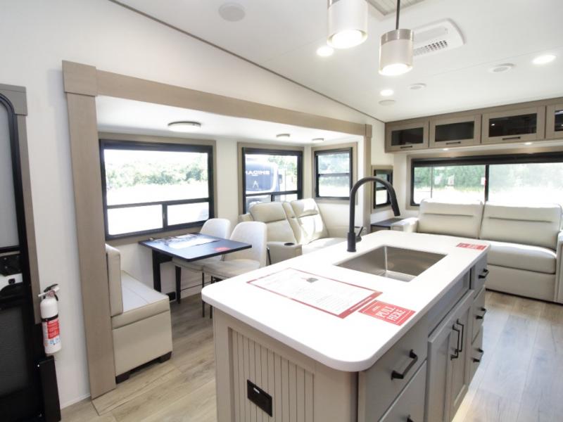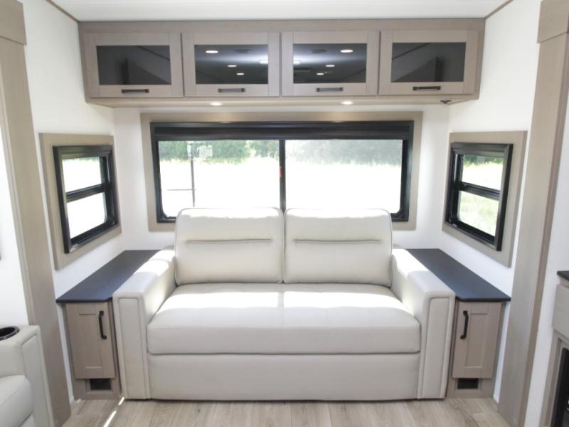 Discover luxury and comfort with the 2026 Grand Design Reflection 337RLS fifth wheel! Enjoy dual opposing slides, a rear tri-fold sofa, and a full-wall wardrobe along with a ton of other exciting features!