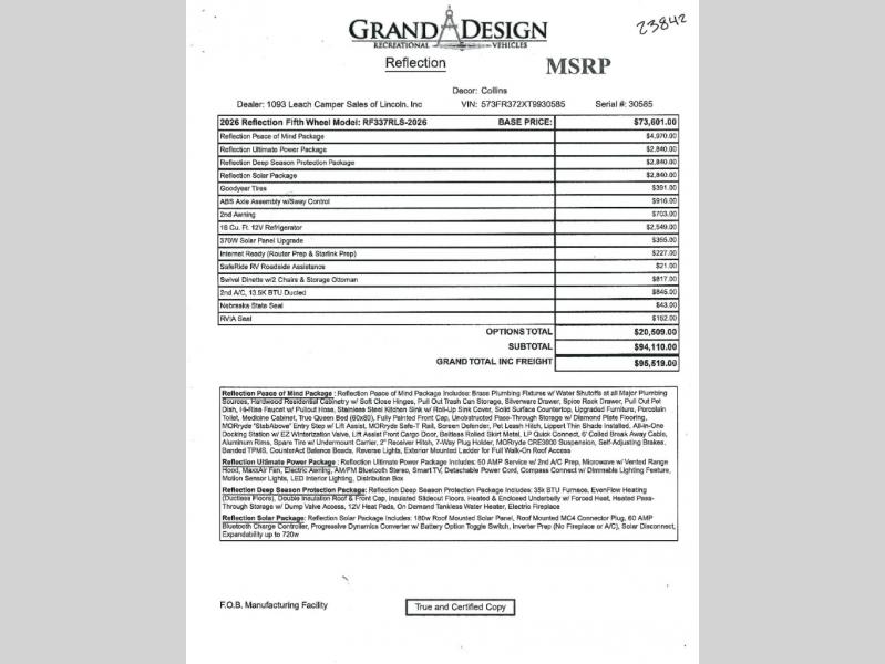 New 2026 Grand Design Reflection 337RLS Fifth Wheel