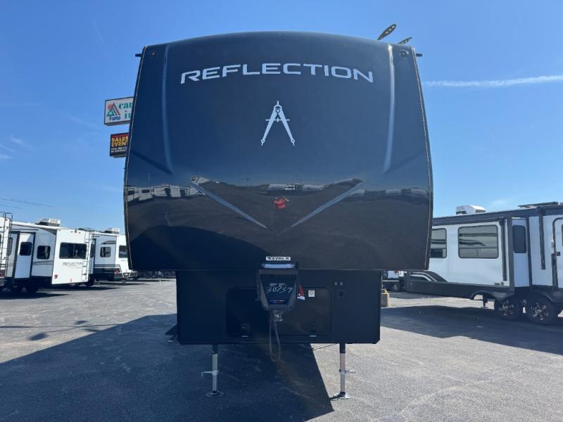 With any Reflection fifth wheel by Grand Design, you will have a solar panel for off-grid camping and a 60 amp charge controller and inverter prep, a Universal All-In-One docking station, unobstructed pass-through storage, and Goodyear Endurance tires. Each is constructed of gel coat exterior sidewalls, residential 5" truss rafters, walk-on roof decking, a fiberglass and radiant foil roof and front cap insulation plus laminated aluminum framed side walls, roof and end walls in slide rooms. Head inside to enjoy residential hardwood cabinet doors, premium Congoleum flooring, a spacious shower with a glass door, and many more comforts!