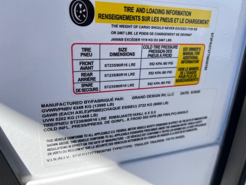 New 2026 Grand Design Reflection 337RLS Fifth Wheel