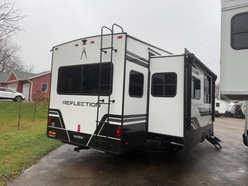 With any Reflection fifth wheel by Grand Design, you will have a solar panel for off-grid camping and a 60 amp charge controller and inverter prep, a Universal All-In-One docking station, unobstructed pass-through storage, and Goodyear Endurance tires. Each is constructed of gel coat exterior sidewalls, residential 5" truss rafters, walk-on roof decking, a fiberglass and radiant foil roof and front cap insulation plus laminated aluminum framed side walls, roof and end walls in slide rooms. Head inside to enjoy residential hardwood cabinet doors, premium Congoleum flooring, a spacious shower with a glass door, and many more comforts!
