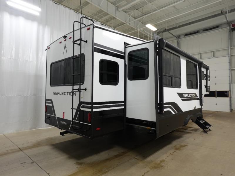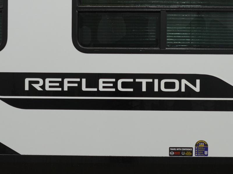 With any Reflection fifth wheel by Grand Design, you will have a solar panel for off-grid camping and a 60 amp charge controller and inverter prep, a Universal All-In-One docking station, unobstructed pass-through storage, and Goodyear Endurance tires. Each is constructed of gel coat exterior sidewalls, residential 5" truss rafters, walk-on roof decking, a fiberglass and radiant foil roof and front cap insulation plus laminated aluminum framed side walls, roof and end walls in slide rooms. Head inside to enjoy residential hardwood cabinet doors, premium Congoleum flooring, a spacious shower with a glass door, and many more comforts!