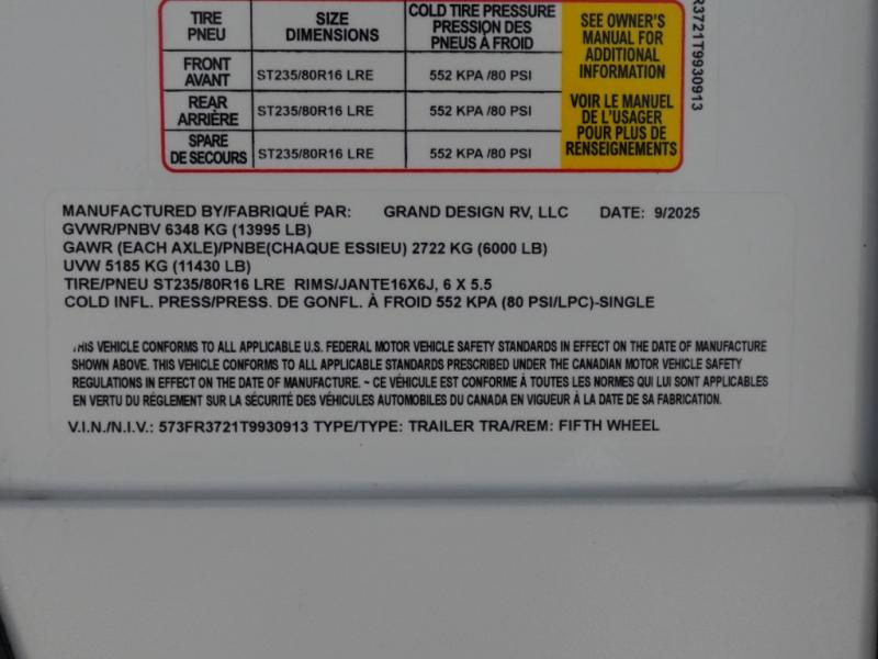 New 2026 Grand Design Reflection 337RLS Fifth Wheel