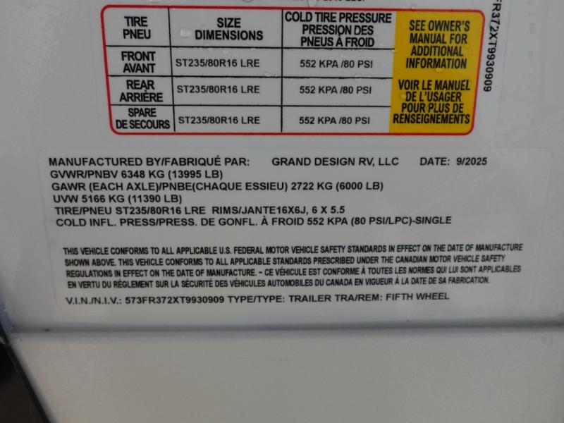New 2026 Grand Design Reflection 337RLS Fifth Wheel