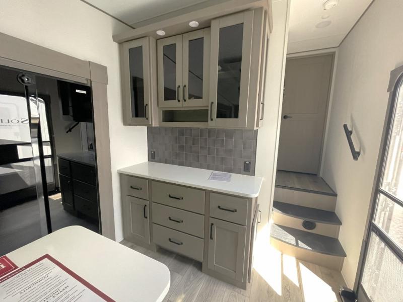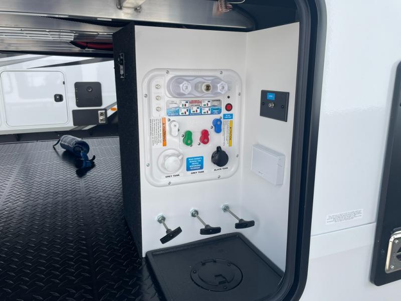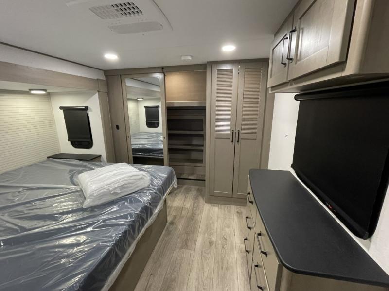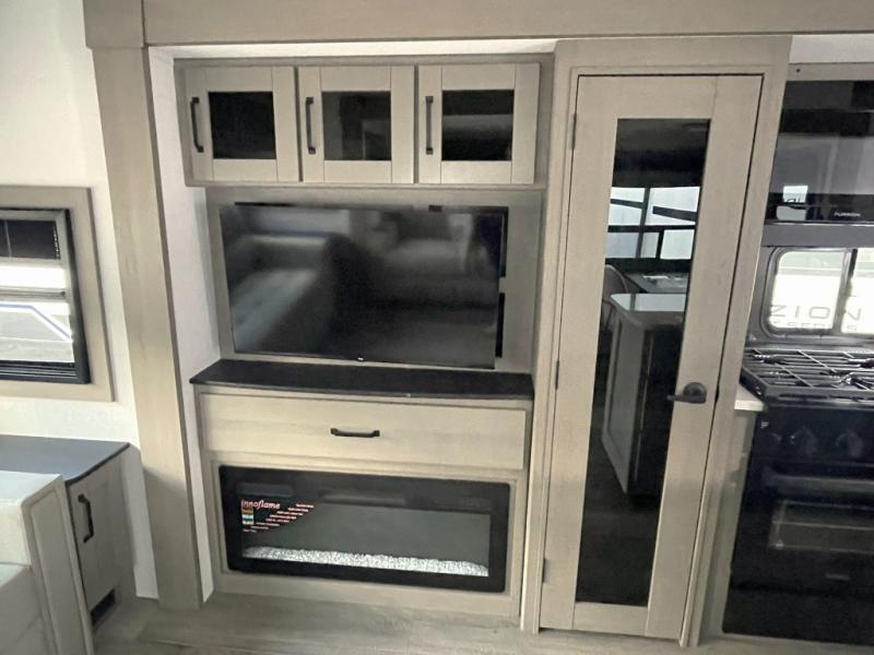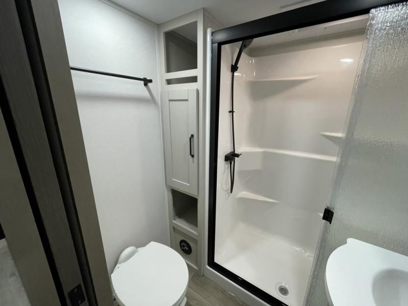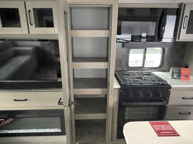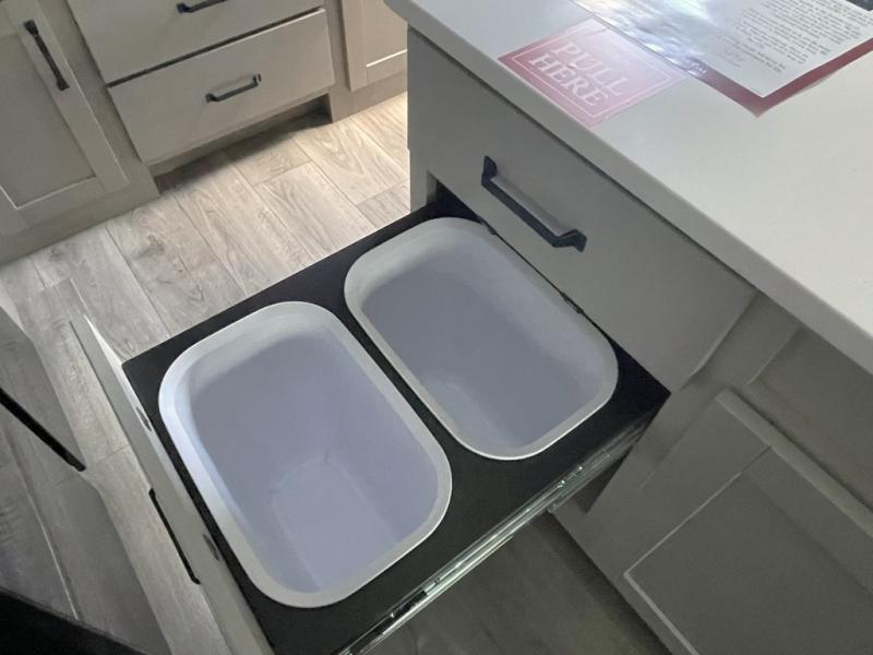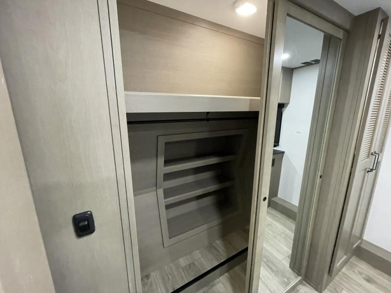 Step inside and feel the difference. The tri-fold sofa doubles as a guest bed, while theater seating offers premium comfort for movie nights. The chef-inspired kitchen keeps everything within reach, from the large pantry to the island prep space, making meal prep a breeze. The full bathroom and private front bedroom provide comfort and privacy for extended trips, and washer/dryer prep adds convenience for longer adventures.