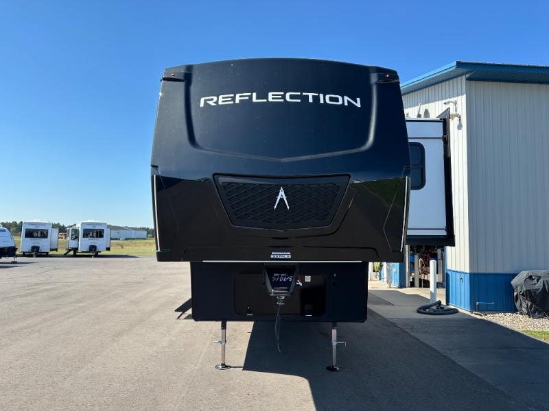 With any Reflection fifth wheel by Grand Design, you will have a solar panel for off-grid camping and a 60 amp charge controller and inverter prep, a Universal All-In-One docking station, unobstructed pass-through storage, and Goodyear Endurance tires. Each is constructed of gel coat exterior sidewalls, residential 5" truss rafters, walk-on roof decking, a fiberglass and radiant foil roof and front cap insulation plus laminated aluminum framed side walls, roof and end walls in slide rooms. Head inside to enjoy residential hardwood cabinet doors, premium Congoleum flooring, a spacious shower with a glass door, and many more comforts!