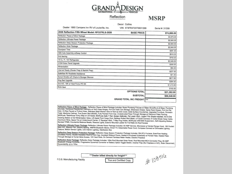New 2026 Grand Design Reflection 337RLS Fifth Wheel