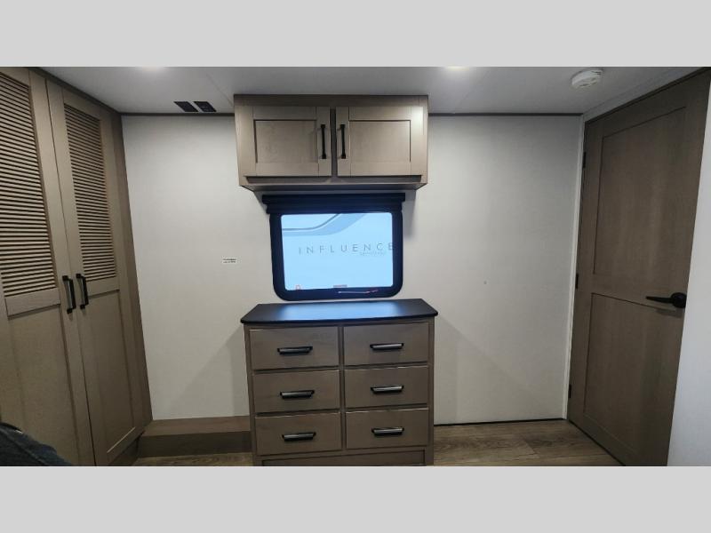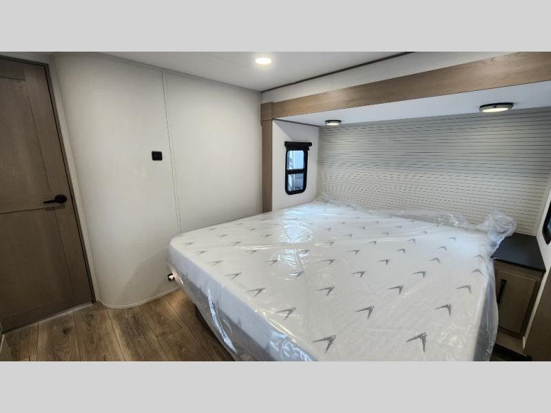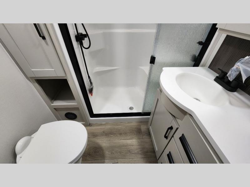The front master suite offers true residential comfort with a walk-around bed, oversized wardrobe, and a beautifully designed bathroom featuring a large shower and practical storage. Grand Design’s renowned insulation, construction quality, and attention to detail give you extended-season capability and long-term durability you can count on.