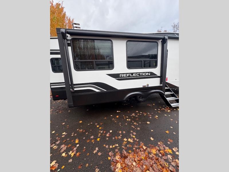 With any Reflection fifth wheel by Grand Design, you will have a solar panel for off-grid camping and a 60 amp charge controller and inverter prep, a Universal All-In-One docking station, unobstructed pass-through storage, and Goodyear Endurance tires. Each is constructed of gel coat exterior sidewalls, residential 5" truss rafters, walk-on roof decking, a fiberglass and radiant foil roof and front cap insulation plus laminated aluminum framed side walls, roof and end walls in slide rooms. Head inside to enjoy residential hardwood cabinet doors, premium Congoleum flooring, a spacious shower with a glass door, and many more comforts!