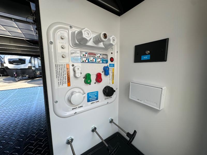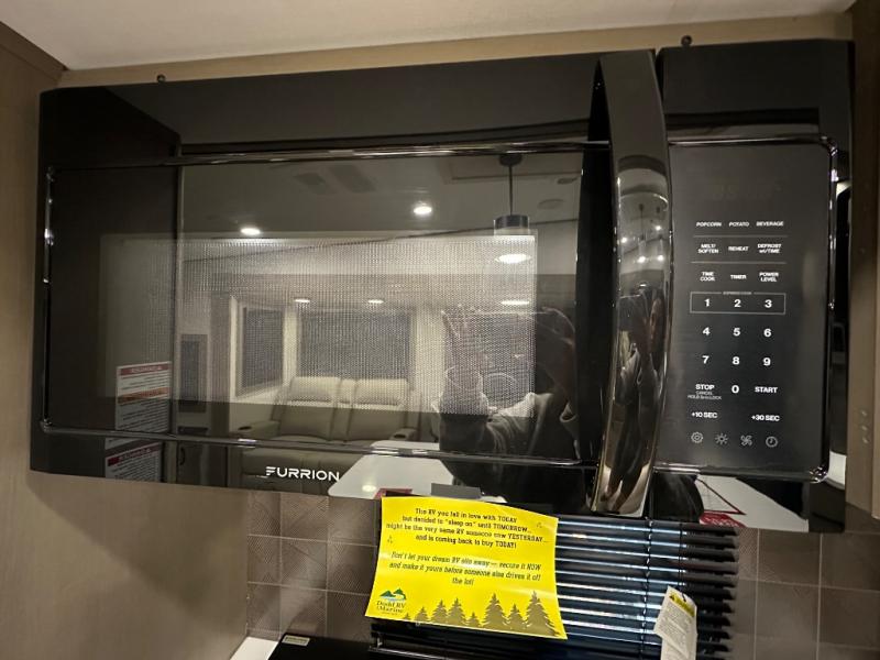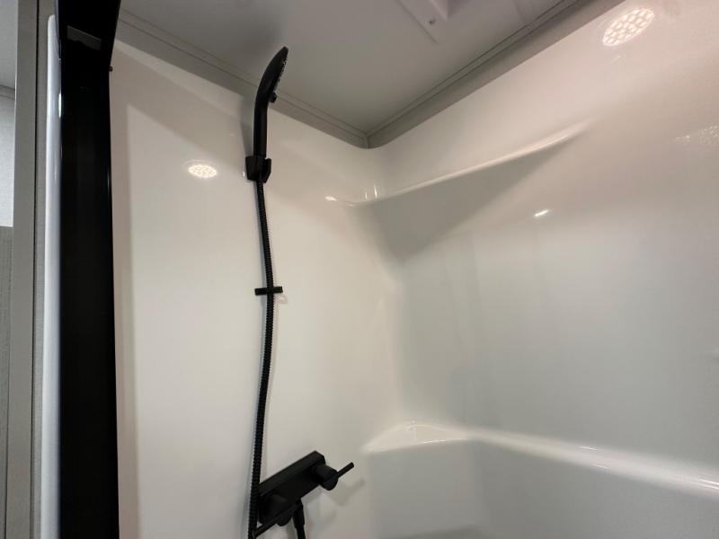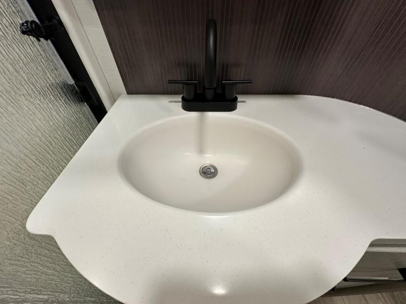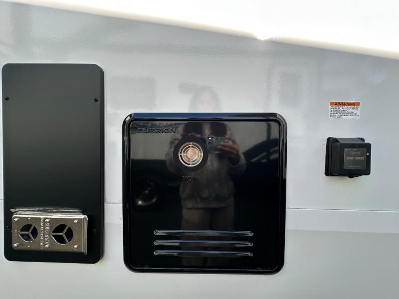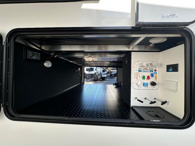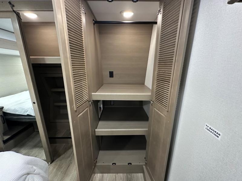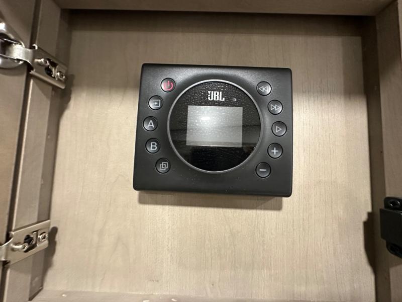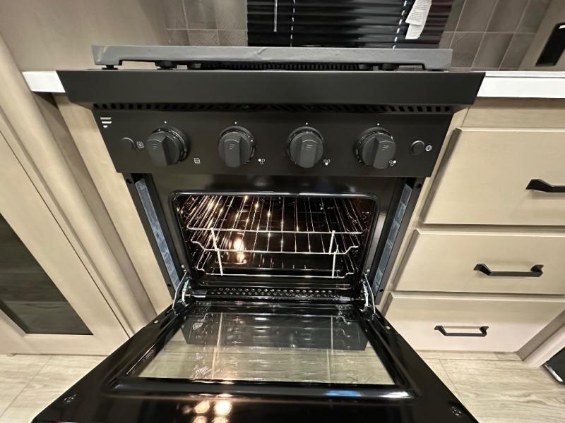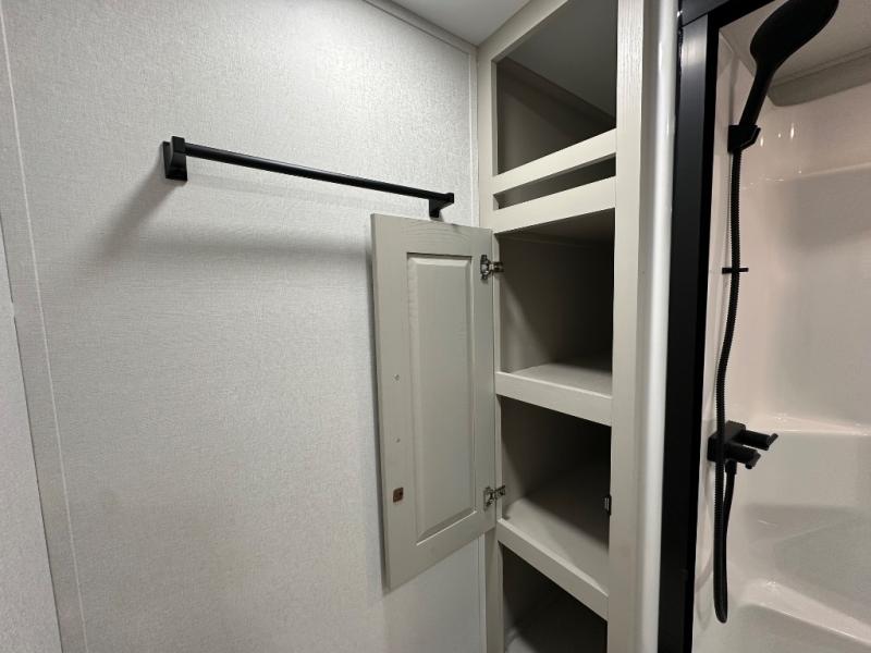 You can enjoy a spacious rear living area in this RV with dual opposing slides offering you entertainment, kitchen amenities, seating and windows for great views! The rear tri-fold sofa also converts into extra sleeping space for an extra guest or two, just like the booth dinette does. Yet you might like to add the swivel dinette option. There are theater seats to enjoy while you place your drinks in the cupholders and watch the entertainment center with a 40" LED HDTV and fireplace. The pantry is big enough to store your favorite snacks, and the kitchen island will make meal prepping easier, plus there is a 16 cu. ft. refrigerator to store any leftovers. The full bathroom has a 30" x 48" fiberglass shower and a linen closet to store your towels. The front private bedroom has a comfortable queen bed slide that can be switched out for the optional king bed, a dresser with overhead cabinets, and a full wall wardrobe that is prepped to add the optional washer and dryer so that you can extend your camping trip with clean clothes!