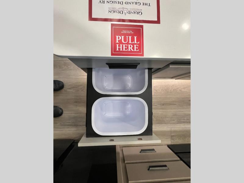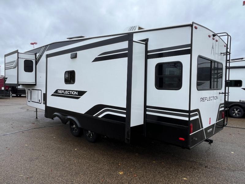 With any Reflection fifth wheel by Grand Design, you will have a solar panel for off-grid camping and a 60 amp charge controller and inverter prep, a Universal All-In-One docking station, unobstructed pass-through storage, and Goodyear Endurance tires. Each is constructed of gel coat exterior sidewalls, residential 5" truss rafters, walk-on roof decking, a fiberglass and radiant foil roof and front cap insulation plus laminated aluminum framed side walls, roof and end walls in slide rooms. Head inside to enjoy residential hardwood cabinet doors, premium Congoleum flooring, a spacious shower with a glass door, and many more comforts!