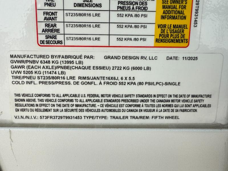 New 2026 Grand Design Reflection 337RLS Fifth Wheel