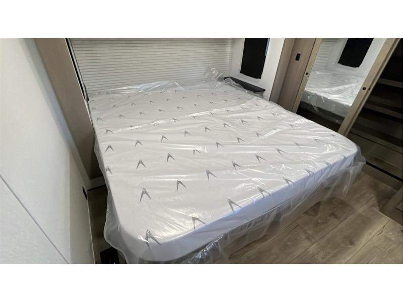 You can enjoy a spacious rear living area in this RV with dual opposing slides offering you entertainment, kitchen amenities, seating and windows for great views! The rear tri-fold sofa also converts into extra sleeping space for an extra guest or two, just like the booth dinette does. Yet you might like to add the swivel dinette option. There are theater seats to enjoy while you place your drinks in the cupholders and watch the entertainment center with a 40" LED HDTV and fireplace. The pantry is big enough to store your favorite snacks, and the kitchen island will make meal prepping easier, plus there is a 16 cu. ft. refrigerator to store any leftovers. The full bathroom has a 30" x 48" fiberglass shower and a linen closet to store your towels. The front private bedroom has a comfortable queen bed slide that can be switched out for the optional king bed, a dresser with overhead cabinets, and a full wall wardrobe that is prepped to add the optional washer and dryer so that you can extend your camping trip with clean clothes!