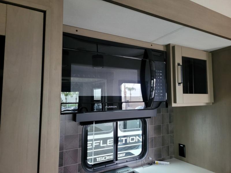 With any Reflection fifth wheel by Grand Design, you will have a solar panel for off-grid camping and a 60 amp charge controller and inverter prep, a Universal All-In-One docking station, unobstructed pass-through storage, and Goodyear Endurance tires. Each is constructed of gel coat exterior sidewalls, residential 5" truss rafters, walk-on roof decking, a fiberglass and radiant foil roof and front cap insulation plus laminated aluminum framed side walls, roof and end walls in slide rooms. Head inside to enjoy residential hardwood cabinet doors, premium Congoleum flooring, a spacious shower with a glass door, and many more comforts!