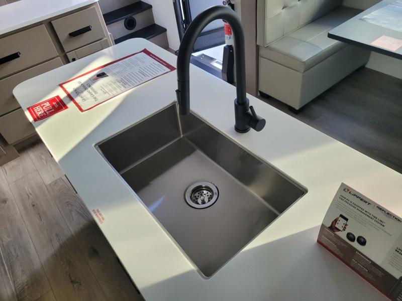 With any Reflection fifth wheel by Grand Design, you will have a solar panel for off-grid camping and a 60 amp charge controller and inverter prep, a Universal All-In-One docking station, unobstructed pass-through storage, and Goodyear Endurance tires. Each is constructed of gel coat exterior sidewalls, residential 5" truss rafters, walk-on roof decking, a fiberglass and radiant foil roof and front cap insulation plus laminated aluminum framed side walls, roof and end walls in slide rooms. Head inside to enjoy residential hardwood cabinet doors, premium Congoleum flooring, a spacious shower with a glass door, and many more comforts!