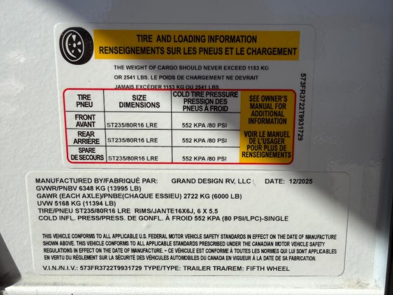 New 2026 Grand Design Reflection 337RLS Fifth Wheel