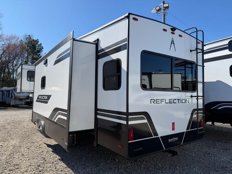 With any Reflection fifth wheel by Grand Design, you will have a solar panel for off-grid camping and a 60 amp charge controller and inverter prep, a Universal All-In-One docking station, unobstructed pass-through storage, and Goodyear Endurance tires. Each is constructed of gel coat exterior sidewalls, residential 5" truss rafters, walk-on roof decking, a fiberglass and radiant foil roof and front cap insulation plus laminated aluminum framed side walls, roof and end walls in slide rooms. Head inside to enjoy residential hardwood cabinet doors, premium Congoleum flooring, a spacious shower with a glass door, and many more comforts!