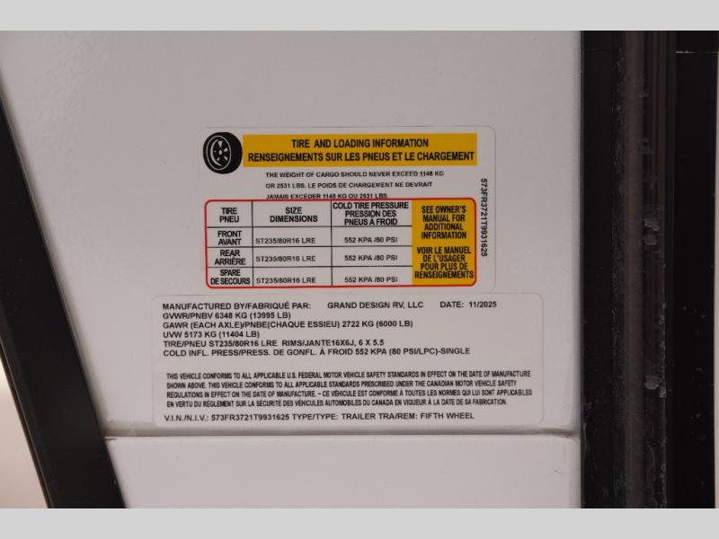 New 2026 Grand Design Reflection 337RLS Fifth Wheel