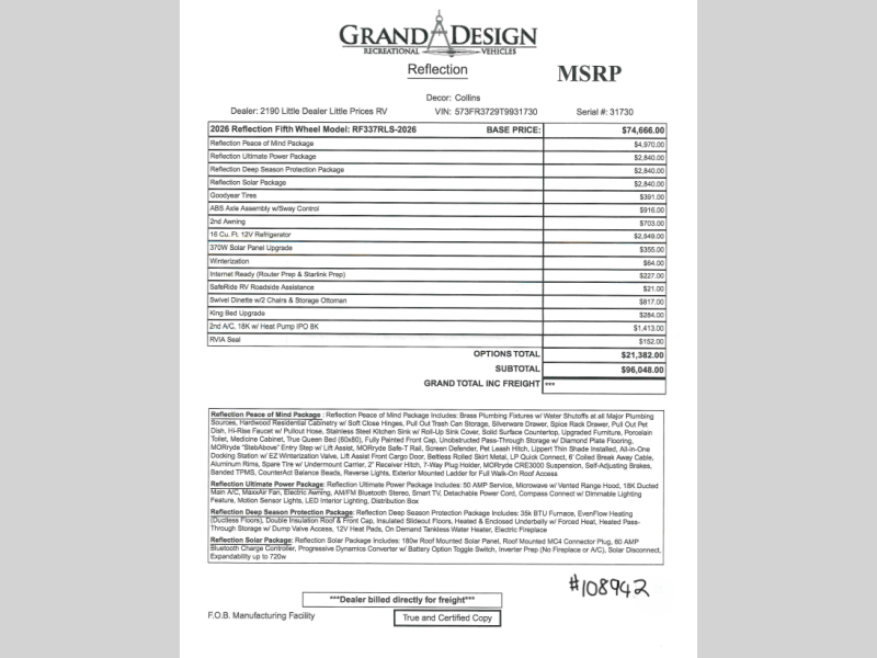 With residential finishes, advanced technology, and thoughtful design, the Reflection 337RLS is perfect for weekend escapes or full time RV living.