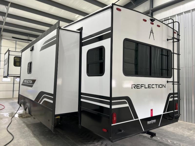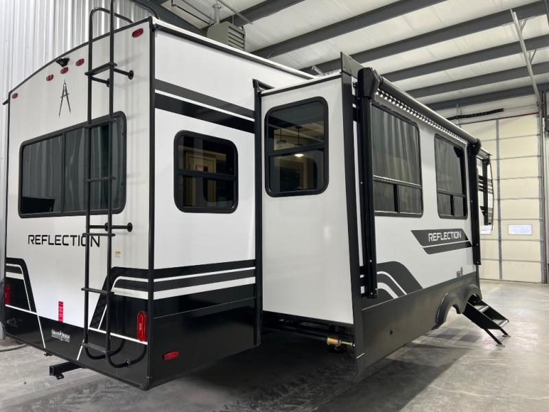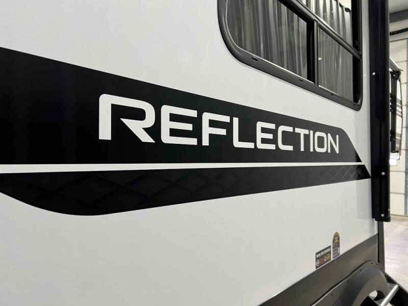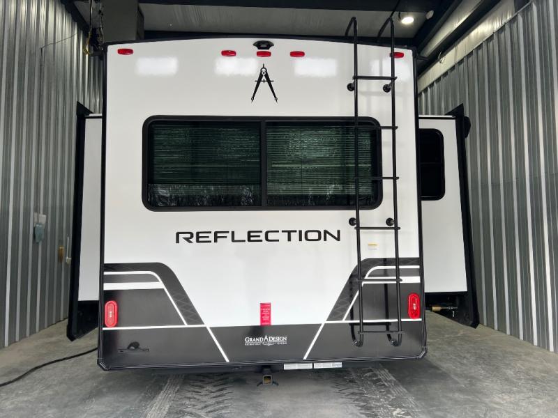 With any Reflection fifth wheel by Grand Design, you will have a solar panel for off-grid camping and a 60 amp charge controller and inverter prep, a Universal All-In-One docking station, unobstructed pass-through storage, and Goodyear Endurance tires. Each is constructed of gel coat exterior sidewalls, residential 5" truss rafters, walk-on roof decking, a fiberglass and radiant foil roof and front cap insulation plus laminated aluminum framed side walls, roof and end walls in slide rooms. Head inside to enjoy residential hardwood cabinet doors, premium Congoleum flooring, a spacious shower with a glass door, and many more comforts!