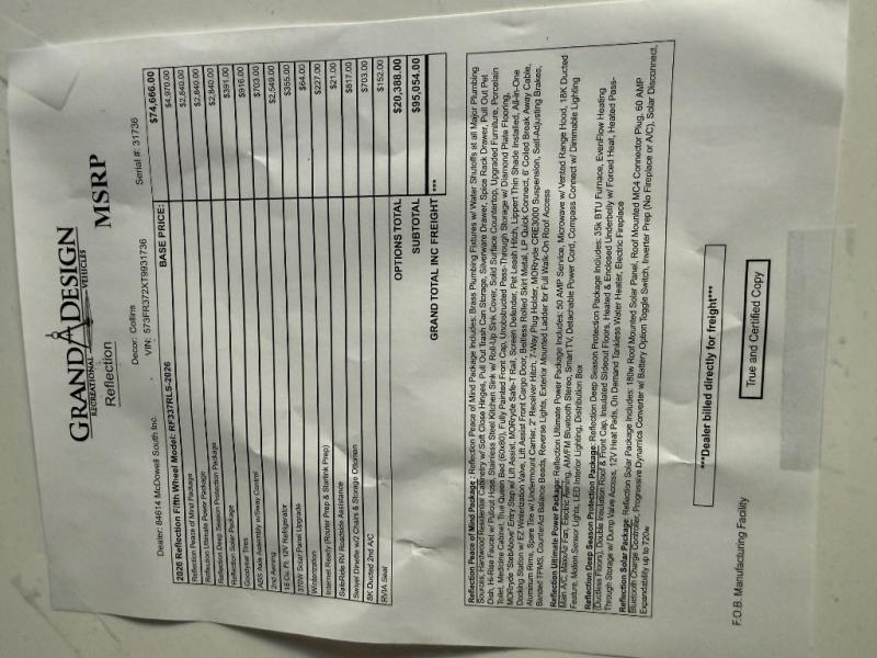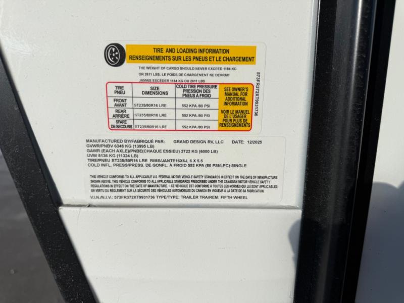 New 2026 Grand Design Reflection 337RLS Fifth Wheel