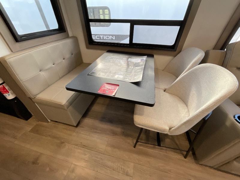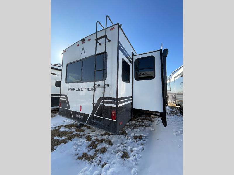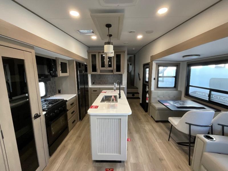 With any Reflection fifth wheel by Grand Design, you will have a solar panel for off-grid camping and a 60 amp charge controller and inverter prep, a Universal All-In-One docking station, unobstructed pass-through storage, and Goodyear Endurance tires. Each is constructed of gel coat exterior sidewalls, residential 5" truss rafters, walk-on roof decking, a fiberglass and radiant foil roof and front cap insulation plus laminated aluminum framed side walls, roof and end walls in slide rooms. Head inside to enjoy residential hardwood cabinet doors, premium Congoleum flooring, a spacious shower with a glass door, and many more comforts!