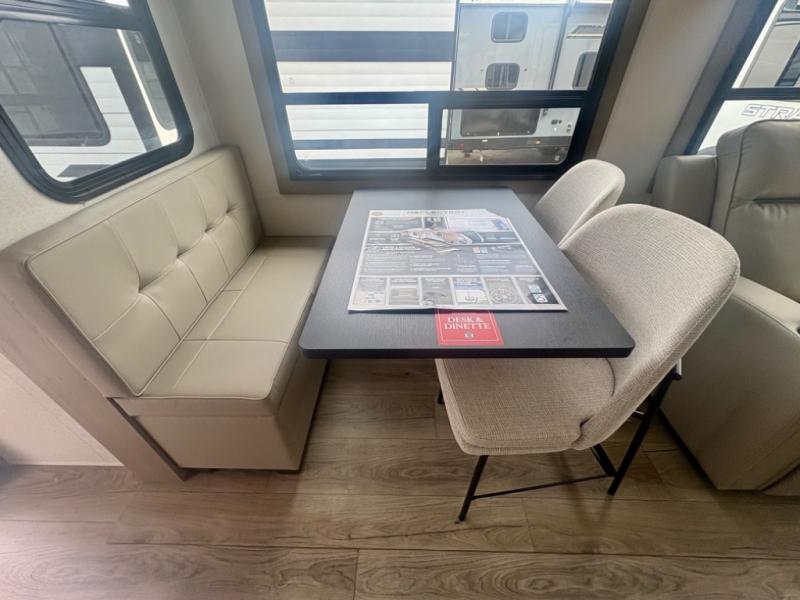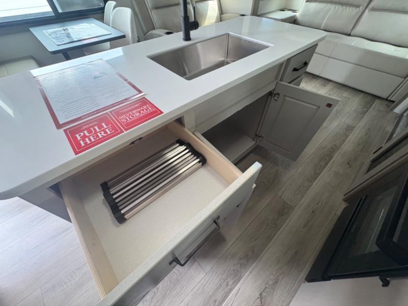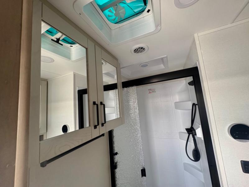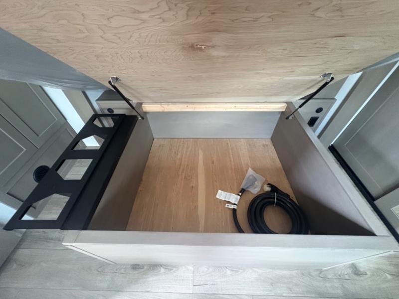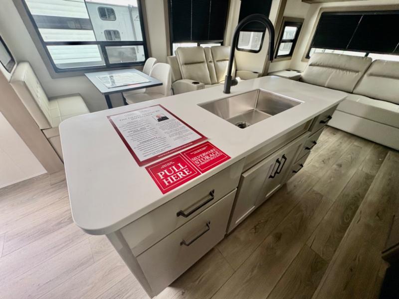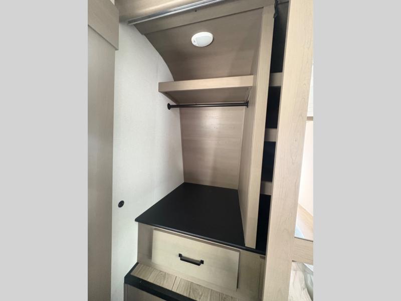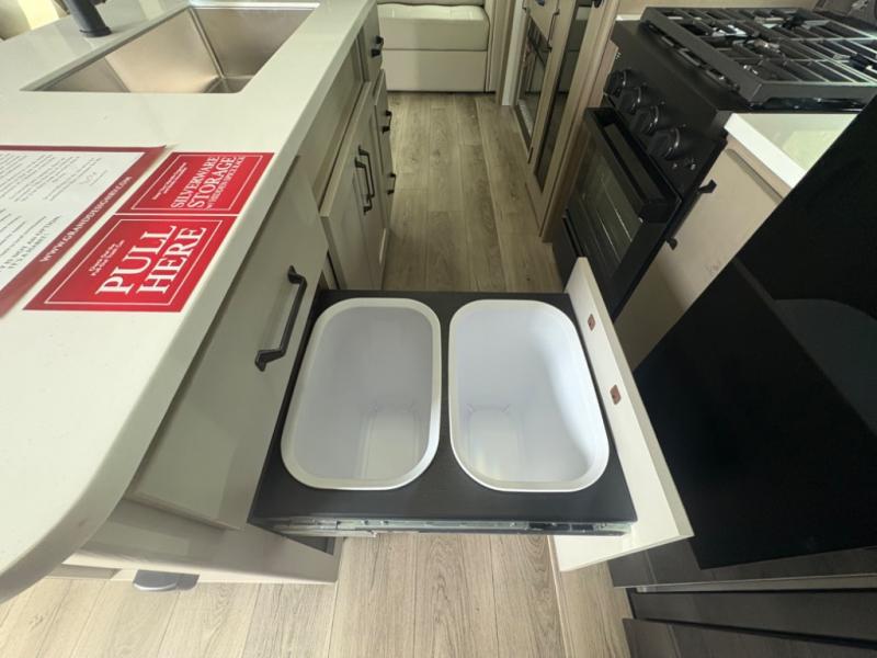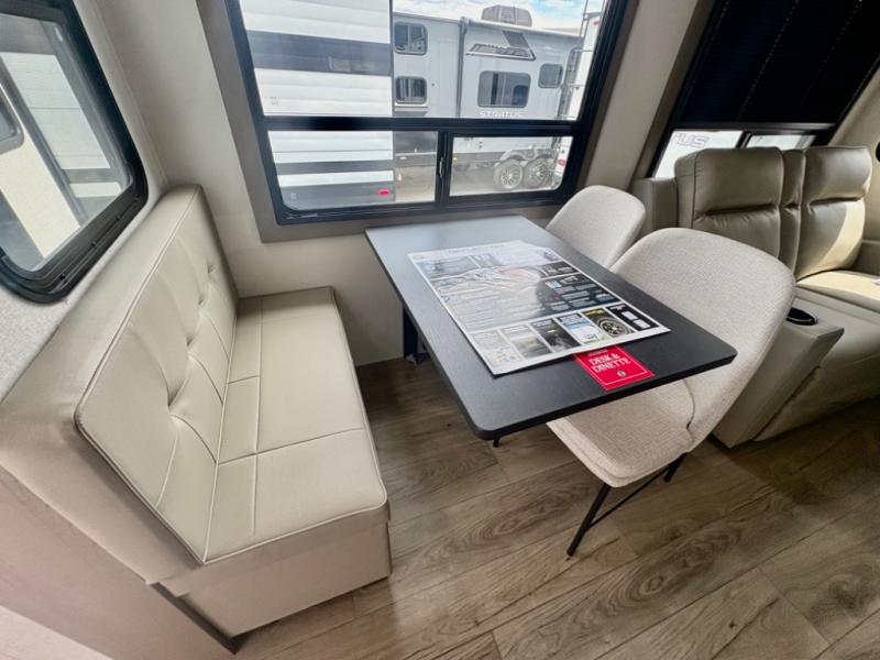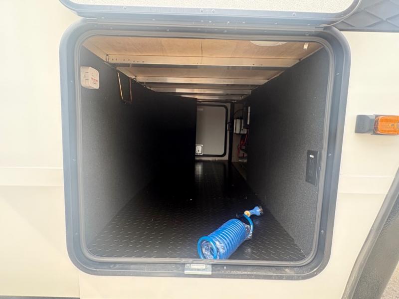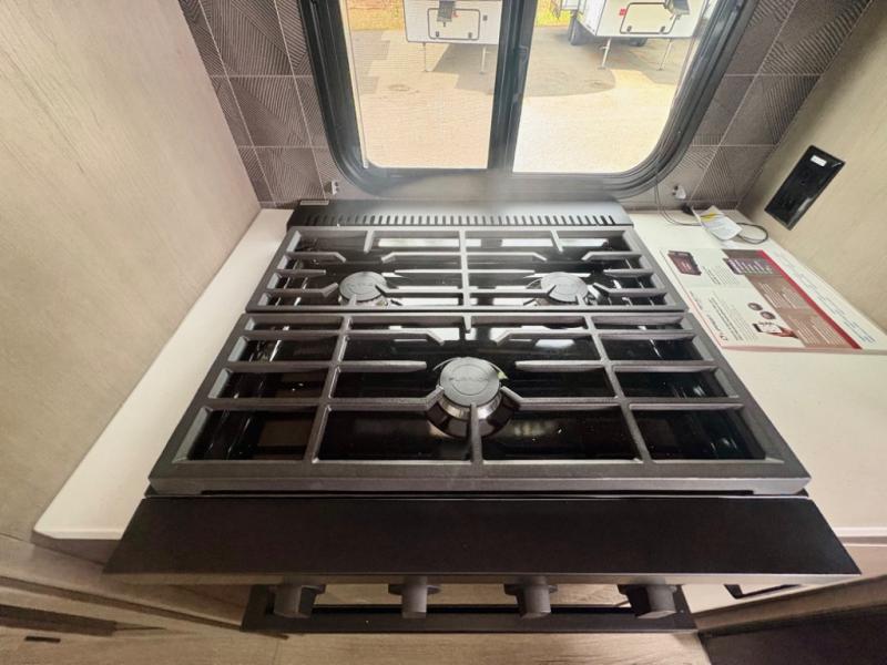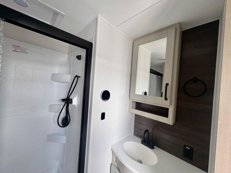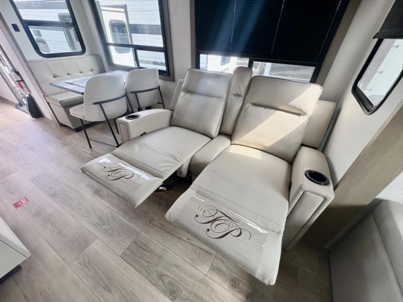 This rear living travel trailer will be perfect for extended stays at the campground or quick weekend trips to the lake! Once you've unloaded your gear from the pass-thru storage, head inside to relax on the rear tri-fold sofa with an adjustable headrest or on the theater seating across from the 40" TV and fireplace. There is also a booth dinette where you can dine together, or you can choose the optional swivel dinette. The spacious kitchen island will make meal time easier than ever, plus there is a pantry and 16 cu. ft. 12V refrigerator for food storage. The full bath is right next to the front private bedroom for easy nighttime use, and speaking of nighttime, you're sure to sleep soundly on the queen bed slide. There is also a large front closet, TV prep, plus washer and dryer prep if you choose to add these appliances.