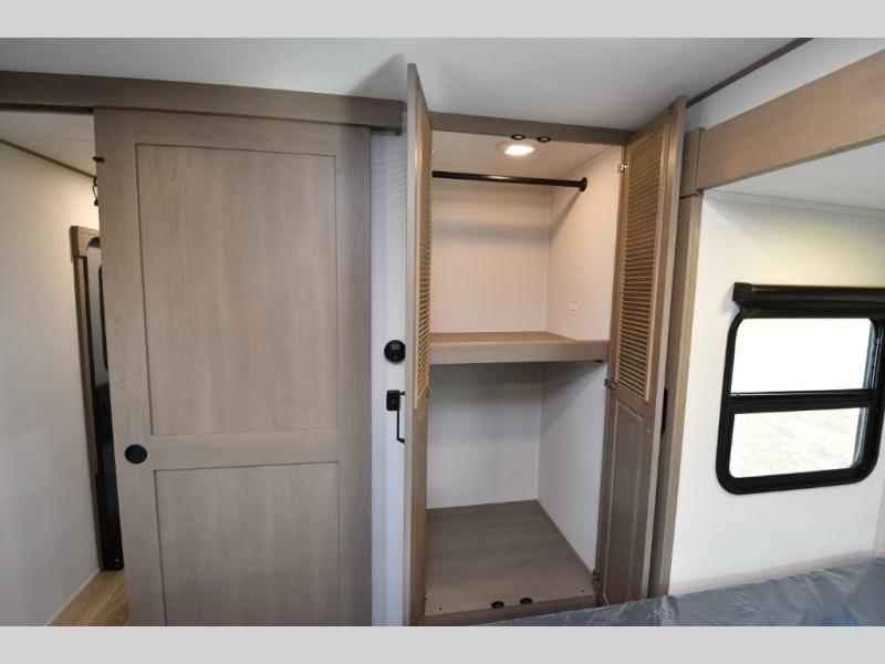 King bed slide with large closet and TV prep
