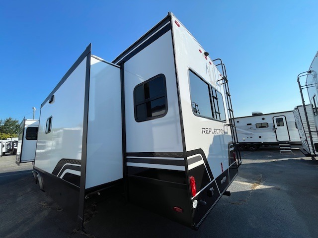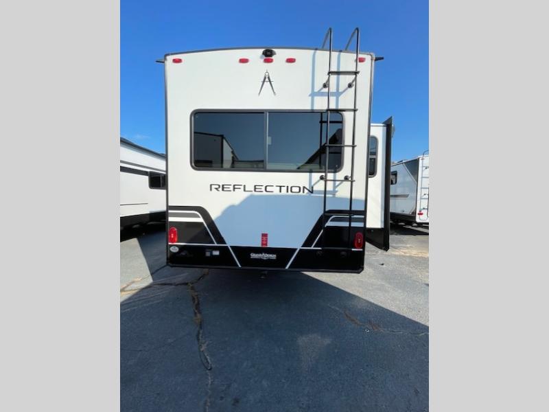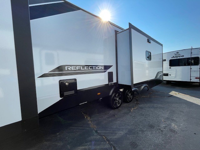 With any Reflection travel trailer by Grand Design, you will have a solar panel for off-grid camping and a 60 amp charge controller and inverter prep, a Universal All-In-One docking station, unobstructed pass-through storage, and Goodyear Endurance tires. Each is constructed of gel coat exterior sidewalls, residential 5" truss rafters, walk-on roof decking, a fiberglass and radiant foil roof and front cap insulation plus laminated aluminum framed side walls, roof and end walls in slide rooms. Head inside to enjoy residential hardwood cabinet doors, premium Congoleum flooring, a spacious shower with a glass door, and many more comforts!