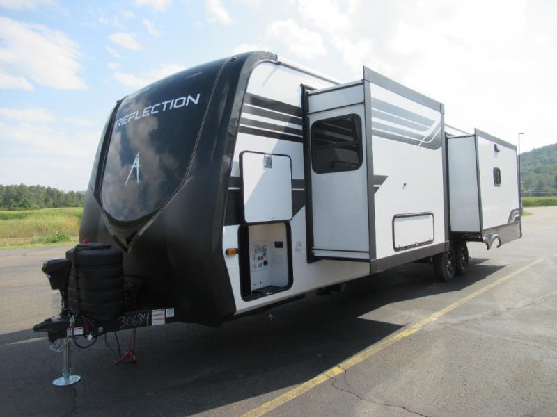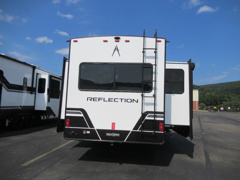 With any Reflection travel trailer by Grand Design, you will have a solar panel for off-grid camping and a 60 amp charge controller and inverter prep, a Universal All-In-One docking station, unobstructed pass-through storage, and Goodyear Endurance tires. Each is constructed of gel coat exterior sidewalls, residential 5" truss rafters, walk-on roof decking, a fiberglass and radiant foil roof and front cap insulation plus laminated aluminum framed side walls, roof and end walls in slide rooms. Head inside to enjoy residential hardwood cabinet doors, premium Congoleum flooring, a spacious shower with a glass door, and many more comforts!