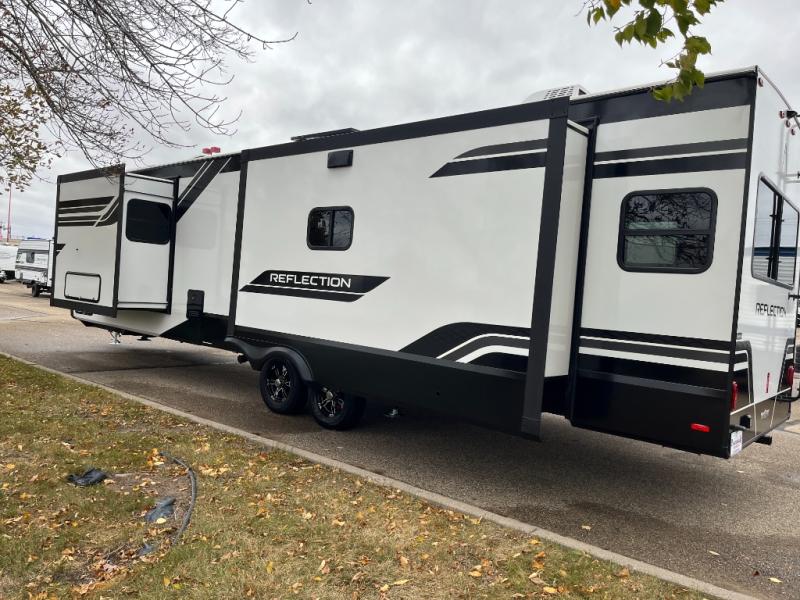 With any Reflection travel trailer by Grand Design, you will have a solar panel for off-grid camping and a 60 amp charge controller and inverter prep, a Universal All-In-One docking station, unobstructed pass-through storage, and Goodyear Endurance tires. Each is constructed of gel coat exterior sidewalls, residential 5" truss rafters, walk-on roof decking, a fiberglass and radiant foil roof and front cap insulation plus laminated aluminum framed side walls, roof and end walls in slide rooms. Head inside to enjoy residential hardwood cabinet doors, premium Congoleum flooring, a spacious shower with a glass door, and many more comforts!