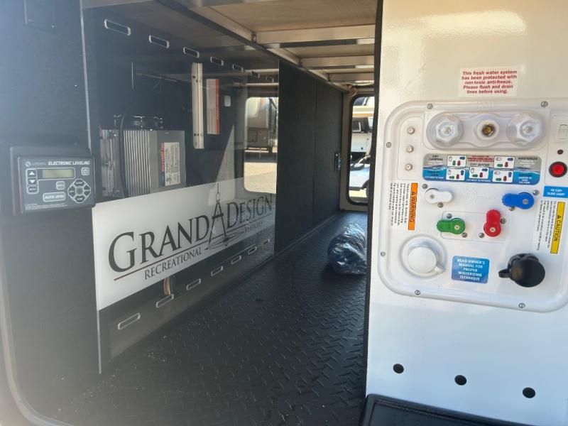 With any Reflection travel trailer by Grand Design, you will have a solar panel for off-grid camping and a 60 amp charge controller and inverter prep, a Universal All-In-One docking station, unobstructed pass-through storage, and Goodyear Endurance tires. Each is constructed of gel coat exterior sidewalls, residential 5" truss rafters, walk-on roof decking, a fiberglass and radiant foil roof and front cap insulation plus laminated aluminum framed side walls, roof and end walls in slide rooms. Head inside to enjoy residential hardwood cabinet doors, premium Congoleum flooring, a spacious shower with a glass door, and many more comforts!