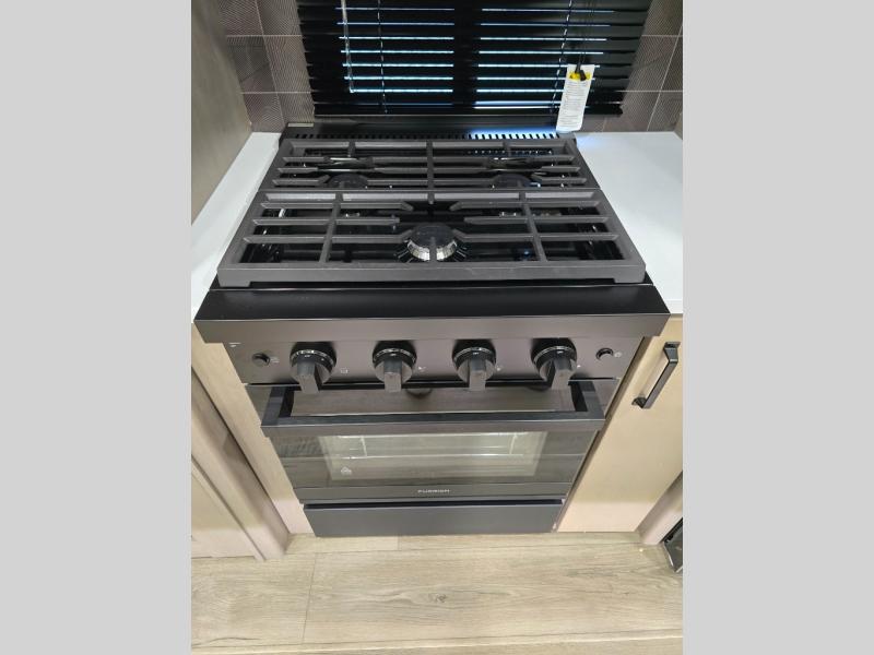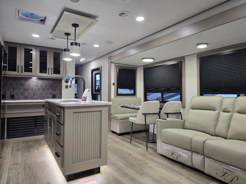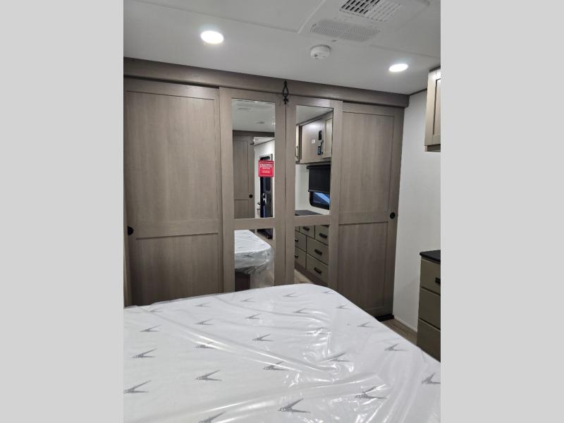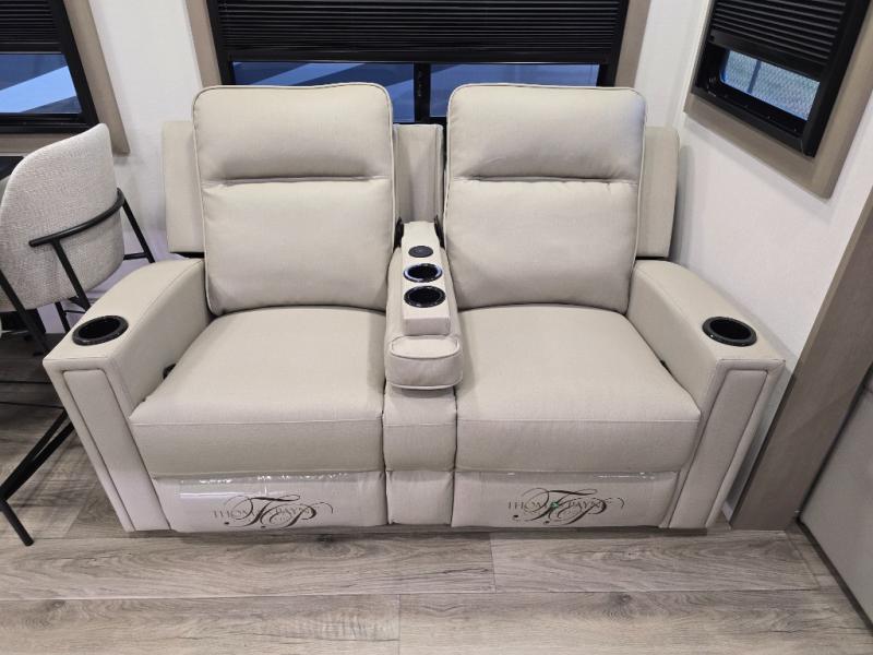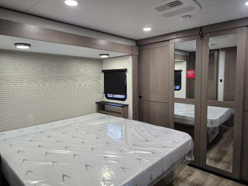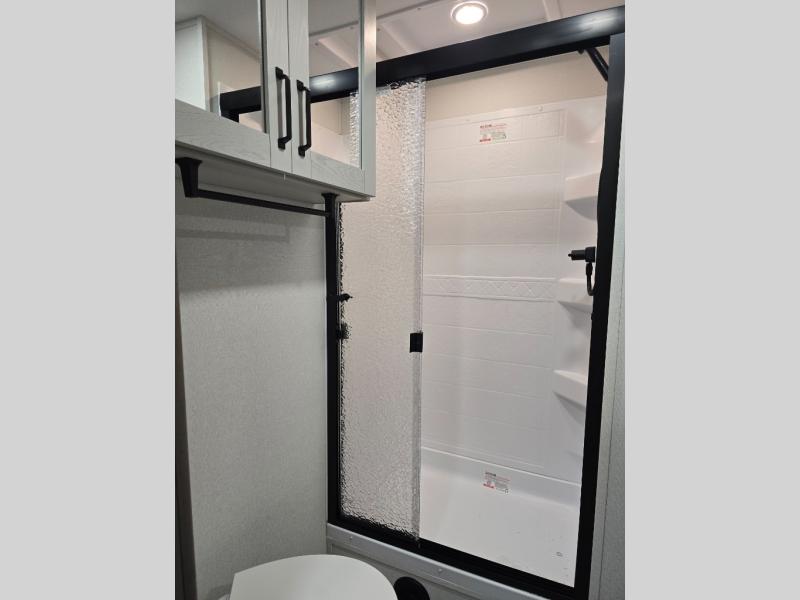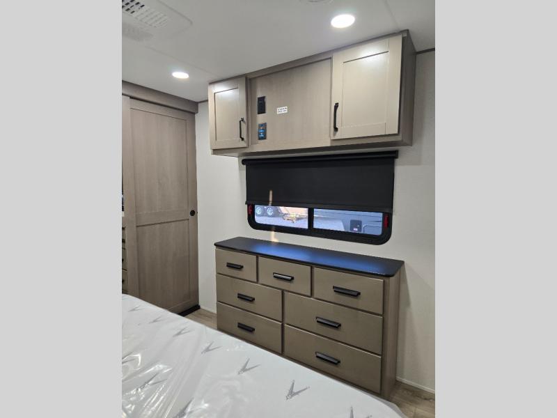 This rear living travel trailer will be perfect for extended stays at the campground or quick weekend trips to the lake! Once you've unloaded your gear from the pass-thru storage, head inside to relax on the rear tri-fold sofa with an adjustable headrest or on the theater seating across from the 40" TV and fireplace. There is also a booth dinette where you can dine together, or you can choose the optional swivel dinette. The spacious kitchen island will make meal time easier than ever, plus there is a pantry and 16 cu. ft. 12V refrigerator for food storage. The full bath is right next to the front private bedroom for easy nighttime use, and speaking of nighttime, you're sure to sleep soundly on the queen bed slide. There is also a large front closet, TV prep, plus washer and dryer prep if you choose to add these appliances.