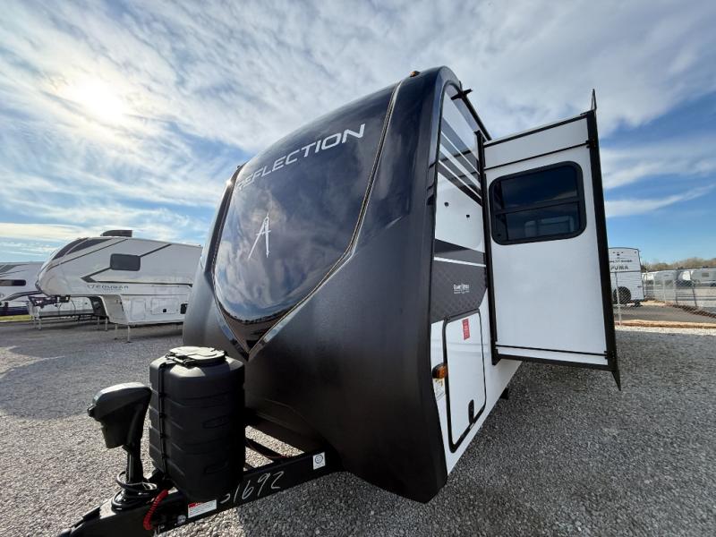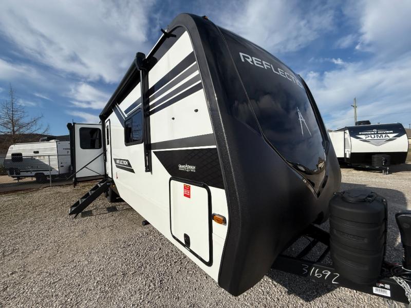 With any Reflection travel trailer by Grand Design, you will have a solar panel for off-grid camping and a 60 amp charge controller and inverter prep, a Universal All-In-One docking station, unobstructed pass-through storage, and Goodyear Endurance tires. Each is constructed of gel coat exterior sidewalls, residential 5" truss rafters, walk-on roof decking, a fiberglass and radiant foil roof and front cap insulation plus laminated aluminum framed side walls, roof and end walls in slide rooms. Head inside to enjoy residential hardwood cabinet doors, premium Congoleum flooring, a spacious shower with a glass door, and many more comforts!