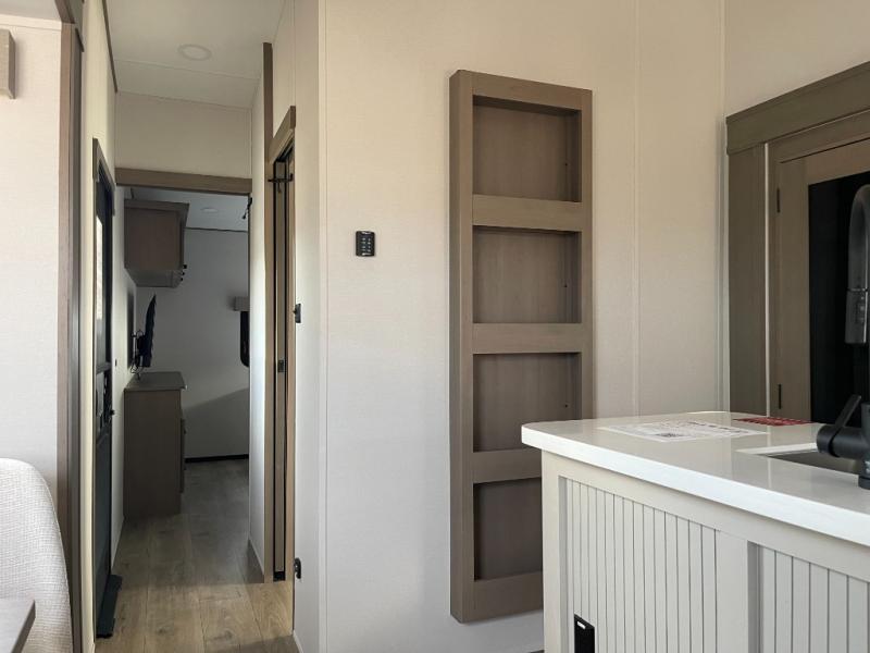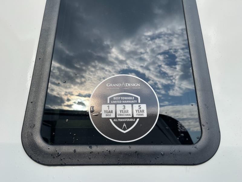 With any Reflection fifth wheel by Grand Design, you will have a solar panel for off-grid camping and a 60 amp charge controller and inverter prep, a Universal All-In-One docking station, unobstructed pass-through storage, and Goodyear Endurance tires. Each is constructed of gel coat exterior sidewalls, residential 5" truss rafters, walk-on roof decking, a fiberglass and radiant foil roof and front cap insulation plus laminated aluminum framed side walls, roof and end walls in slide rooms. Head inside to enjoy residential hardwood cabinet doors, premium Congoleum flooring, a spacious shower with a glass door, and many more comforts!