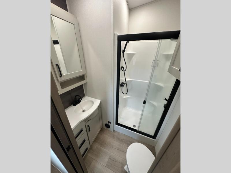 With any Reflection fifth wheel by Grand Design, you will have a solar panel for off-grid camping and a 60 amp charge controller and inverter prep, a Universal All-In-One docking station, unobstructed pass-through storage, and Goodyear Endurance tires. Each is constructed of gel coat exterior sidewalls, residential 5" truss rafters, walk-on roof decking, a fiberglass and radiant foil roof and front cap insulation plus laminated aluminum framed side walls, roof and end walls in slide rooms. Head inside to enjoy residential hardwood cabinet doors, premium Congoleum flooring, a spacious shower with a glass door, and many more comforts!