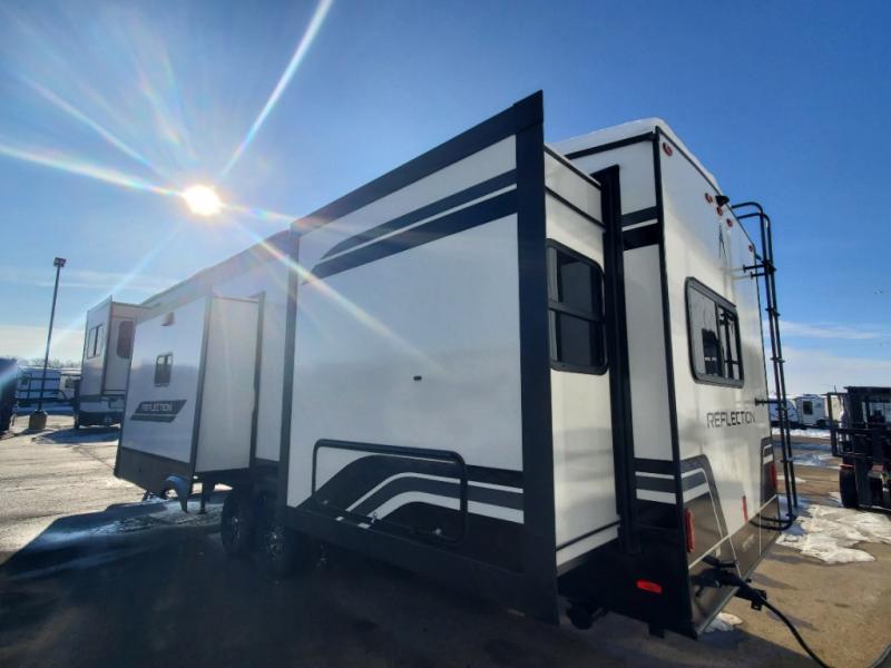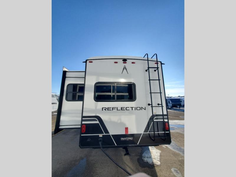 With any Reflection fifth wheel by Grand Design, you will have a solar panel for off-grid camping and a 60 amp charge controller and inverter prep, a Universal All-In-One docking station, unobstructed pass-through storage, and Goodyear Endurance tires. Each is constructed of gel coat exterior sidewalls, residential 5" truss rafters, walk-on roof decking, a fiberglass and radiant foil roof and front cap insulation plus laminated aluminum framed side walls, roof and end walls in slide rooms. Head inside to enjoy residential hardwood cabinet doors, premium Congoleum flooring, a spacious shower with a glass door, and many more comforts!