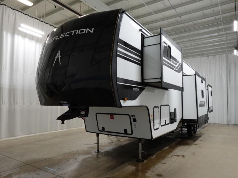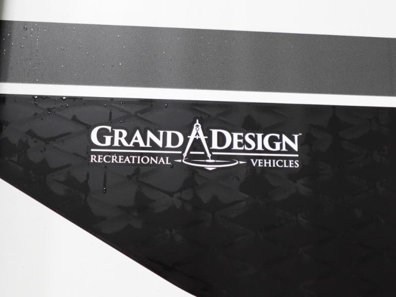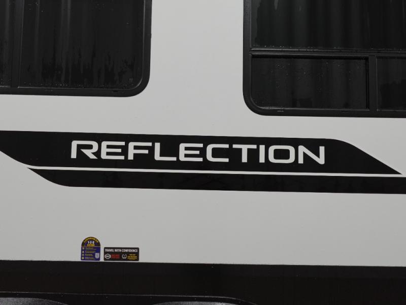 With any Reflection fifth wheel by Grand Design, you will have a solar panel for off-grid camping and a 60 amp charge controller and inverter prep, a Universal All-In-One docking station, unobstructed pass-through storage, and Goodyear Endurance tires. Each is constructed of gel coat exterior sidewalls, residential 5" truss rafters, walk-on roof decking, a fiberglass and radiant foil roof and front cap insulation plus laminated aluminum framed side walls, roof and end walls in slide rooms. Head inside to enjoy residential hardwood cabinet doors, premium Congoleum flooring, a spacious shower with a glass door, and many more comforts!