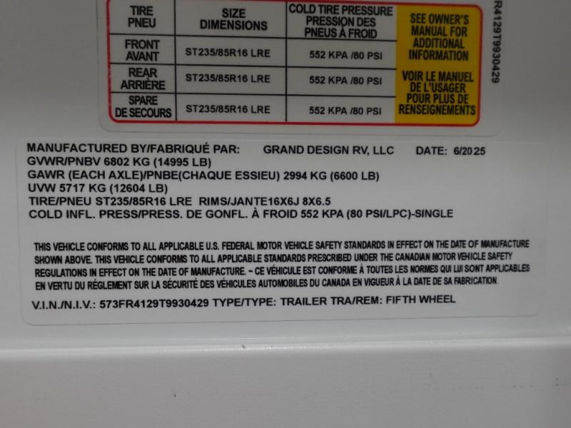 New 2026 Grand Design Reflection 362TBS Fifth Wheel