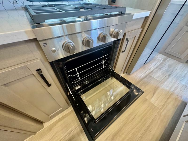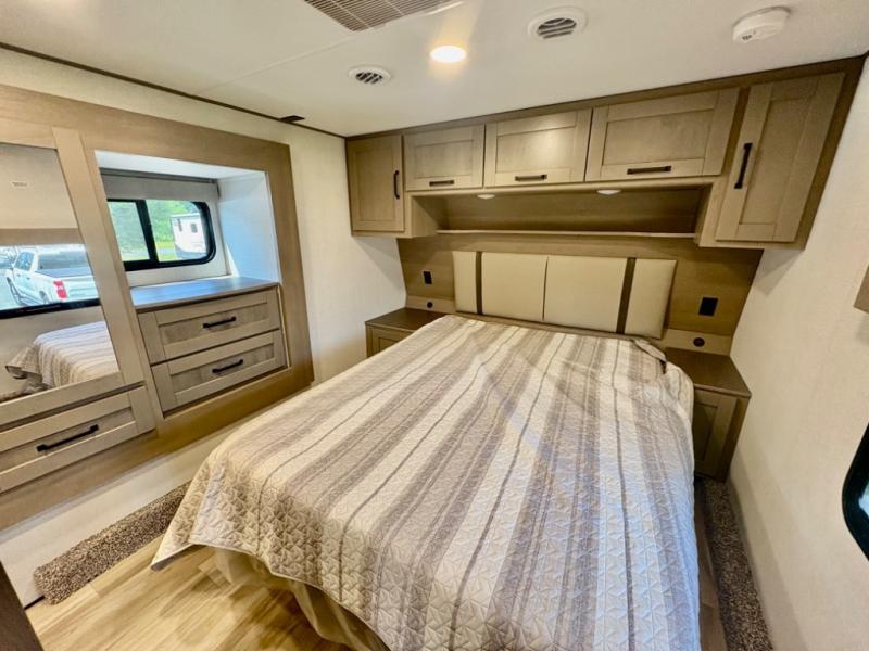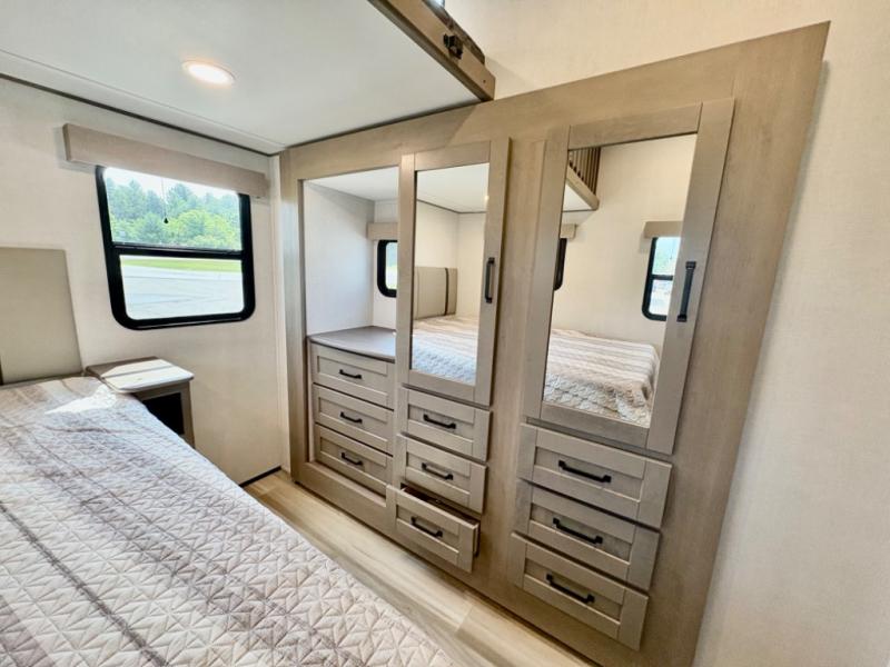 The rear bunk suite easily converts to an office or private guest space, making this RV ideal for remote workers or full-timers. -