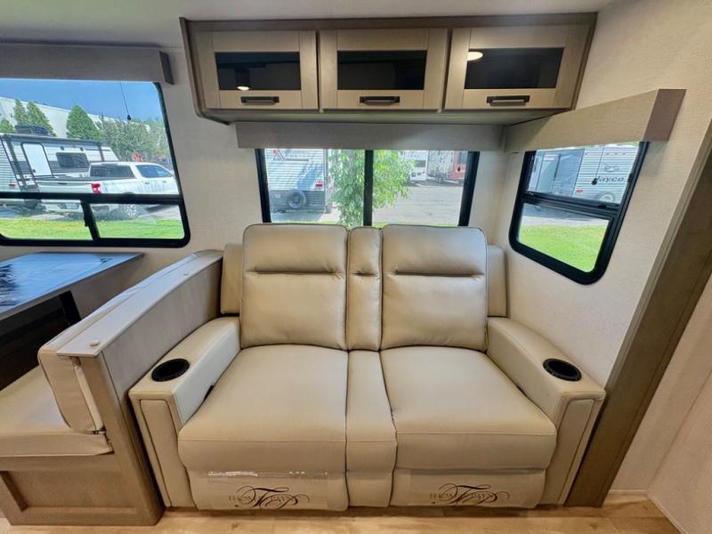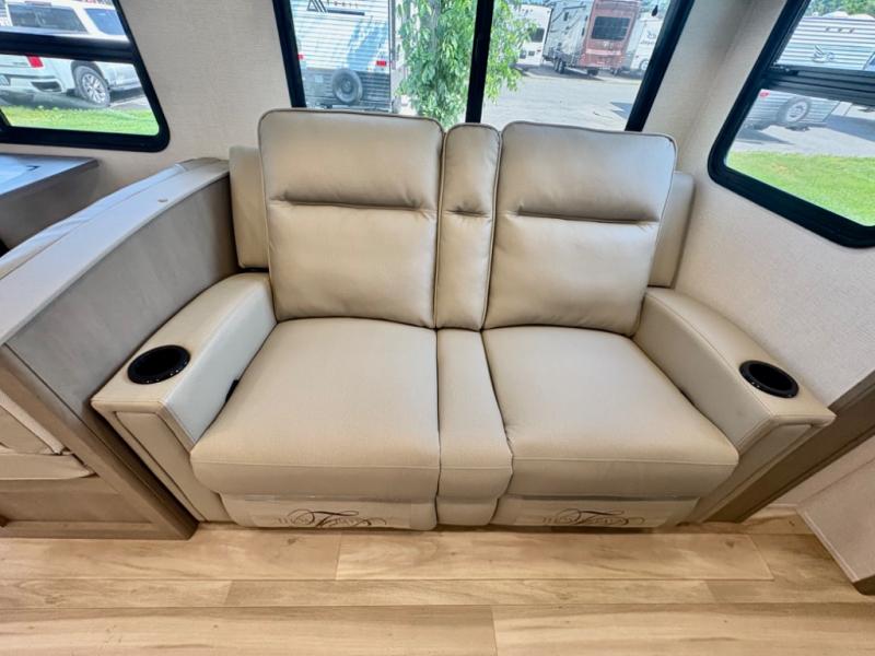 Relax and Unwind – Gather at the booth dinette for family meals or game night, or kick back in theater seating across from the entertainment center with fireplace and 40" TV. Optional upgrades like a tri-fold sofa or swivel dinette let you personalize your space.