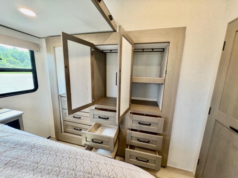 Abundant Storage – Closet space, overhead cabinets, and a generous pass-through storage compartment mean you can bring all the gear and essentials you need for extended adventures.