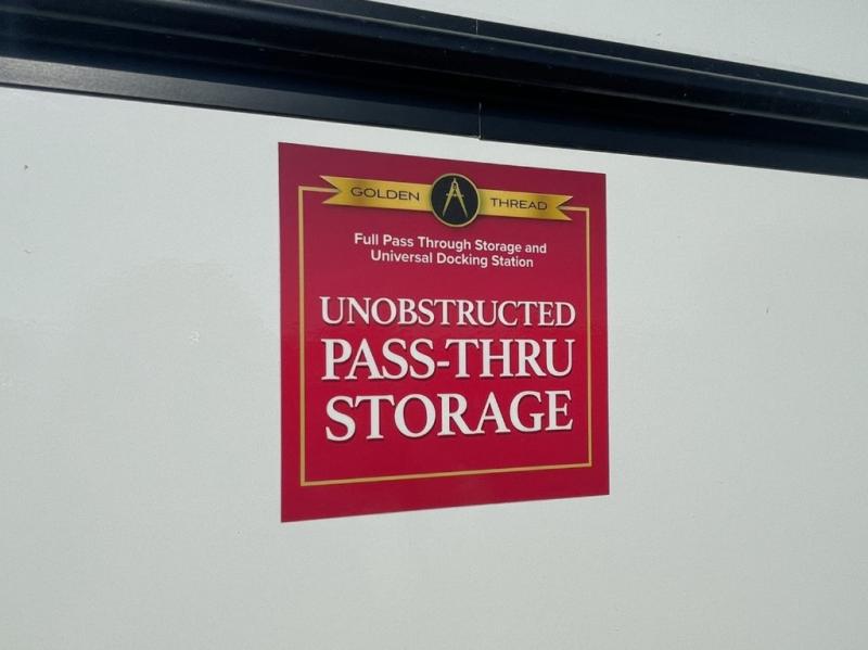 Universal docking station and unobstructed pass-through storage