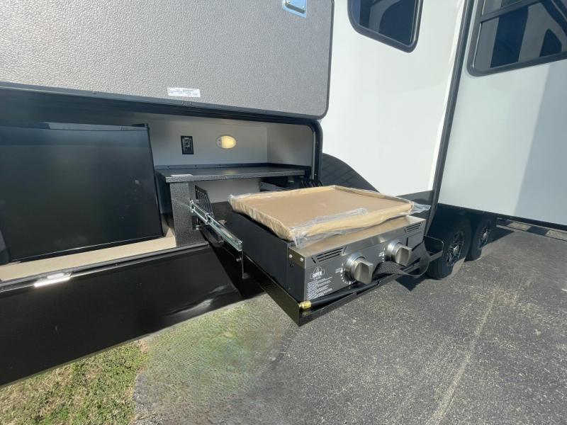Want to enjoy the outdoors? Fire up the outside griddle under the shade of your awning, grab a cold drink from the outdoor fridge, and take in the fresh air.