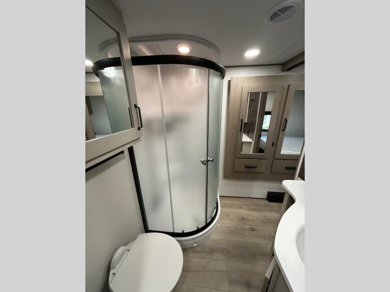 With any Reflection fifth wheel by Grand Design, you will have a solar panel for off-grid camping and a 60 amp charge controller and inverter prep, a Universal All-In-One docking station, unobstructed pass-through storage, and Goodyear Endurance tires. Each is constructed of gel coat exterior sidewalls, residential 5" truss rafters, walk-on roof decking, a fiberglass and radiant foil roof and front cap insulation plus laminated aluminum framed side walls, roof and end walls in slide rooms. Head inside to enjoy residential hardwood cabinet doors, premium Congoleum flooring, a spacious shower with a glass door, and many more comforts!