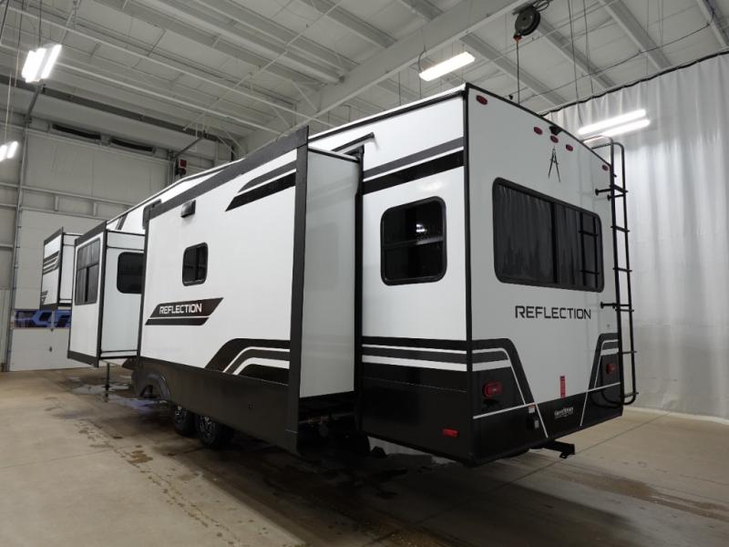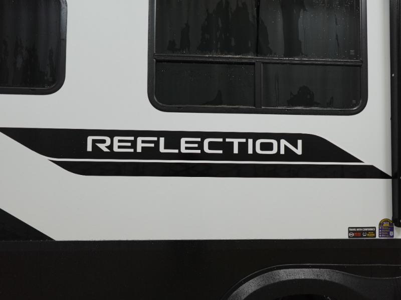 With any Reflection fifth wheel by Grand Design, you will have a solar panel for off-grid camping and a 60 amp charge controller and inverter prep, a Universal All-In-One docking station, unobstructed pass-through storage, and Goodyear Endurance tires. Each is constructed of gel coat exterior sidewalls, residential 5" truss rafters, walk-on roof decking, a fiberglass and radiant foil roof and front cap insulation plus laminated aluminum framed side walls, roof and end walls in slide rooms. Head inside to enjoy residential hardwood cabinet doors, premium Congoleum flooring, a spacious shower with a glass door, and many more comforts!