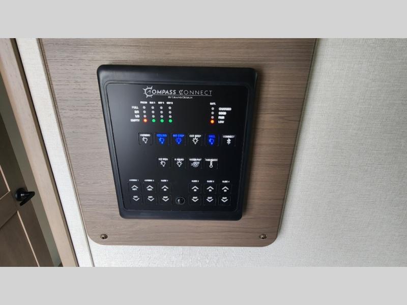Includes roof-mounted solar panel and inverter prep for off-grid capability. -