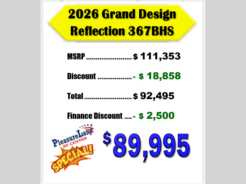 New 2026 Grand Design Reflection 367BHS Fifth Wheel